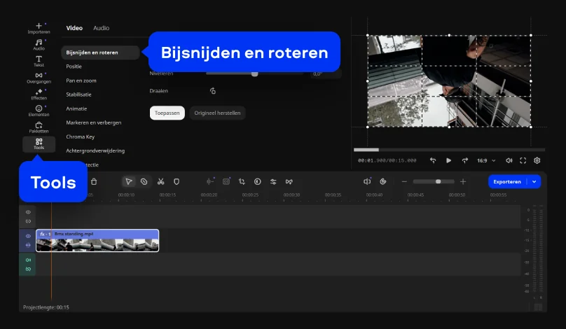 Wat dit handig maakt, is de snelheid. Ik klik een paar keer om de video te draaien, bekijk het resultaat en pas het zo nodig nog een keer aan. Binnen een paar minuten is het klaar.