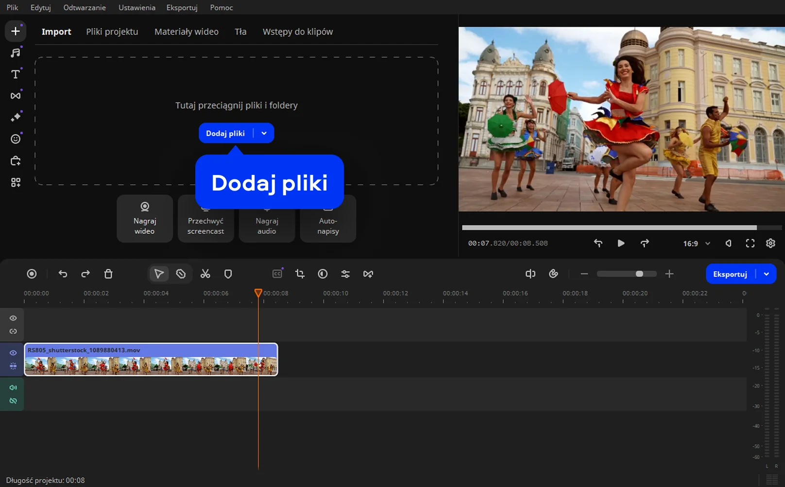 Movavi Video Editor został stworzony dla twórców, którzy chcą mieć pełną kontrolę. Ta potężna aplikacja pomoże ci nie tylko dodać zdjęcie do filmu, ale także edytować klipy wideo – przycinać i łączyć, dodawać zabawne naklejki, stosować kreatywne filtry i wiele więcej. W najnowszej wersji wprowadzono ulepszone renderowanie MP4, szybsze ładowanie projektów i płynniejsze odtwarzanie w rozdzielczości 4K. Poniżej znajdziesz przewodnik krok po kroku, jak nałożyć zdjęcie na film.