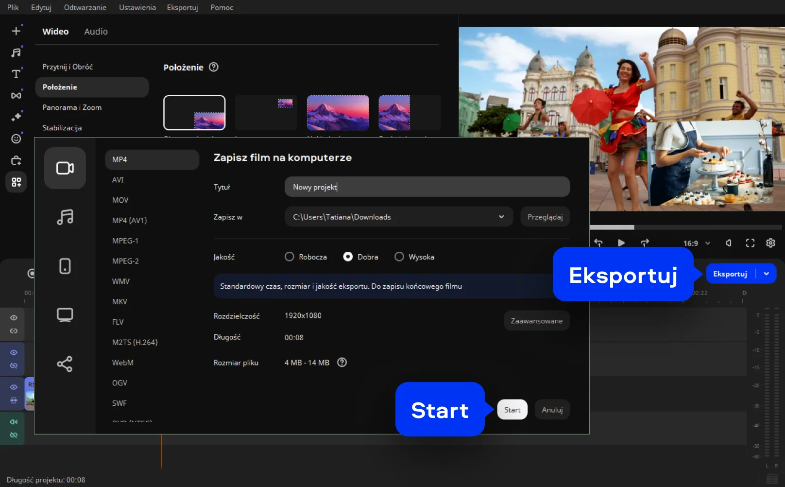 Dlaczego ją wybrałam: Lubię Movavi Video Editor, ponieważ jest szybki i intuicyjny. Kiedy potrzebowałam umieścić zdjęcie na filmie lub nałożyć logo, poradził sobie z tym bez problemu.