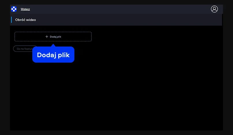 Kliknij przycisk Prześlij pliki na górnym banerze i wybierz wideo z komputera. Materiał od razu pojawi się w edytorze, gotowy do prostych zmian. Po przesłaniu filmu kliknij Go to feature.