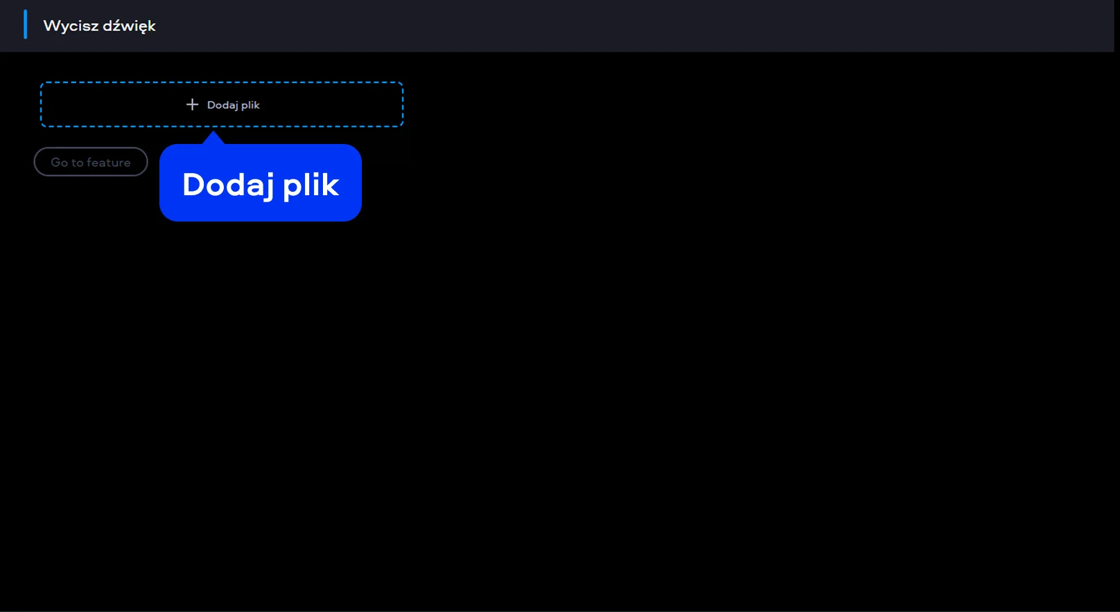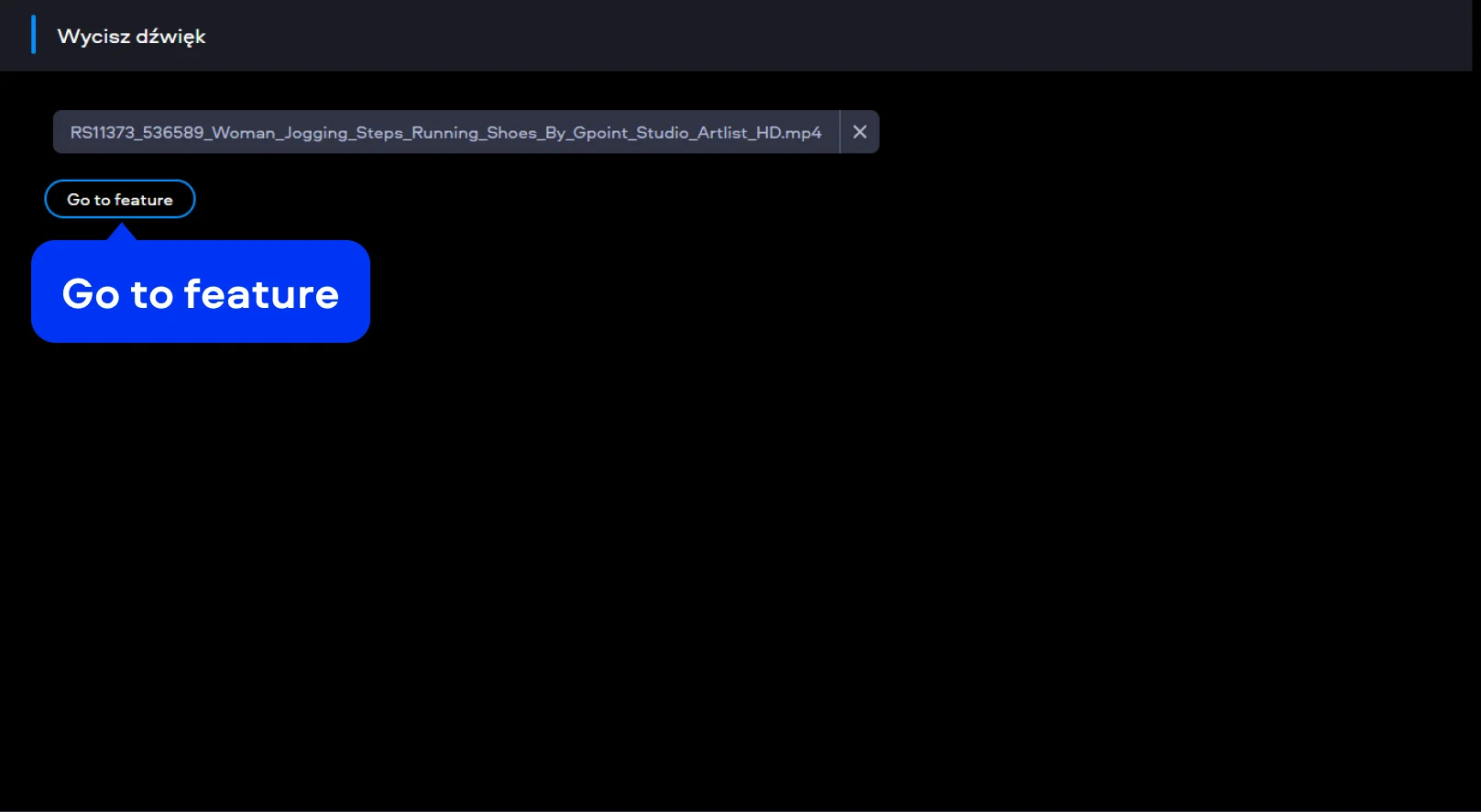 Po zakończeniu przesyłania naciśnij Go to feature. Następnie przetwarzanie pliku rozpocznie się natychmiast i potrwa tylko kilka sekund. Narzędzie automatycznie usuwa całą ścieżkę dźwiękową z filmu, bez kombinowania z ustawieniami.