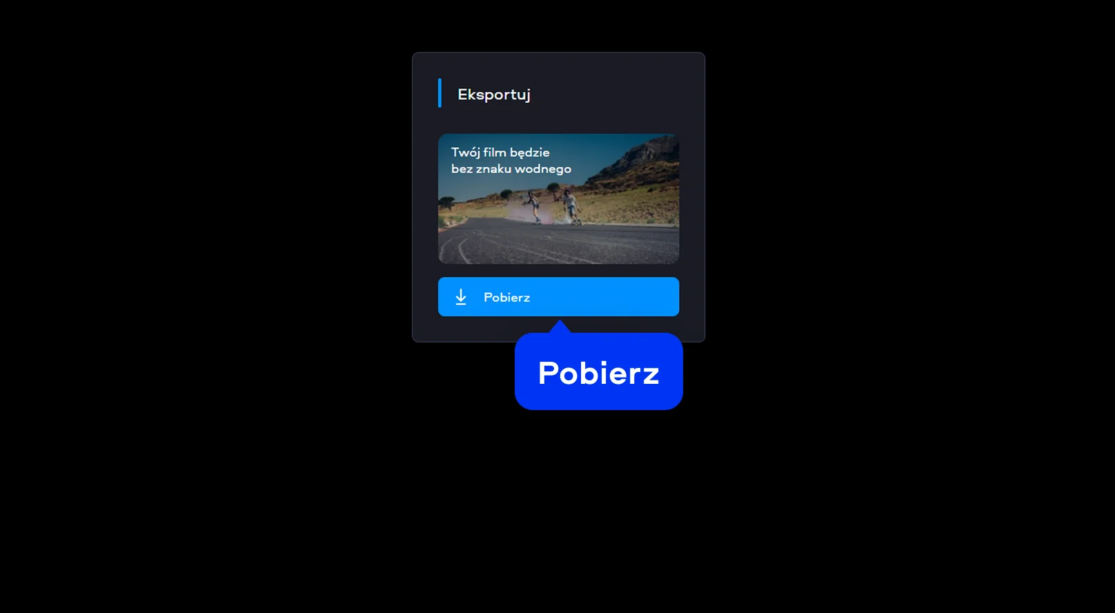 Kliknij Pobierz, aby zapisać wyciszony film. Po chwili masz gotowy plik, idealny do social mediów, prezentacji albo dalszego montażu.