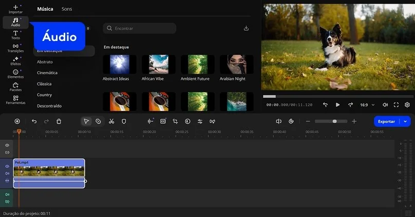 Adicione áudio ao seu vídeo e transforme suas criações