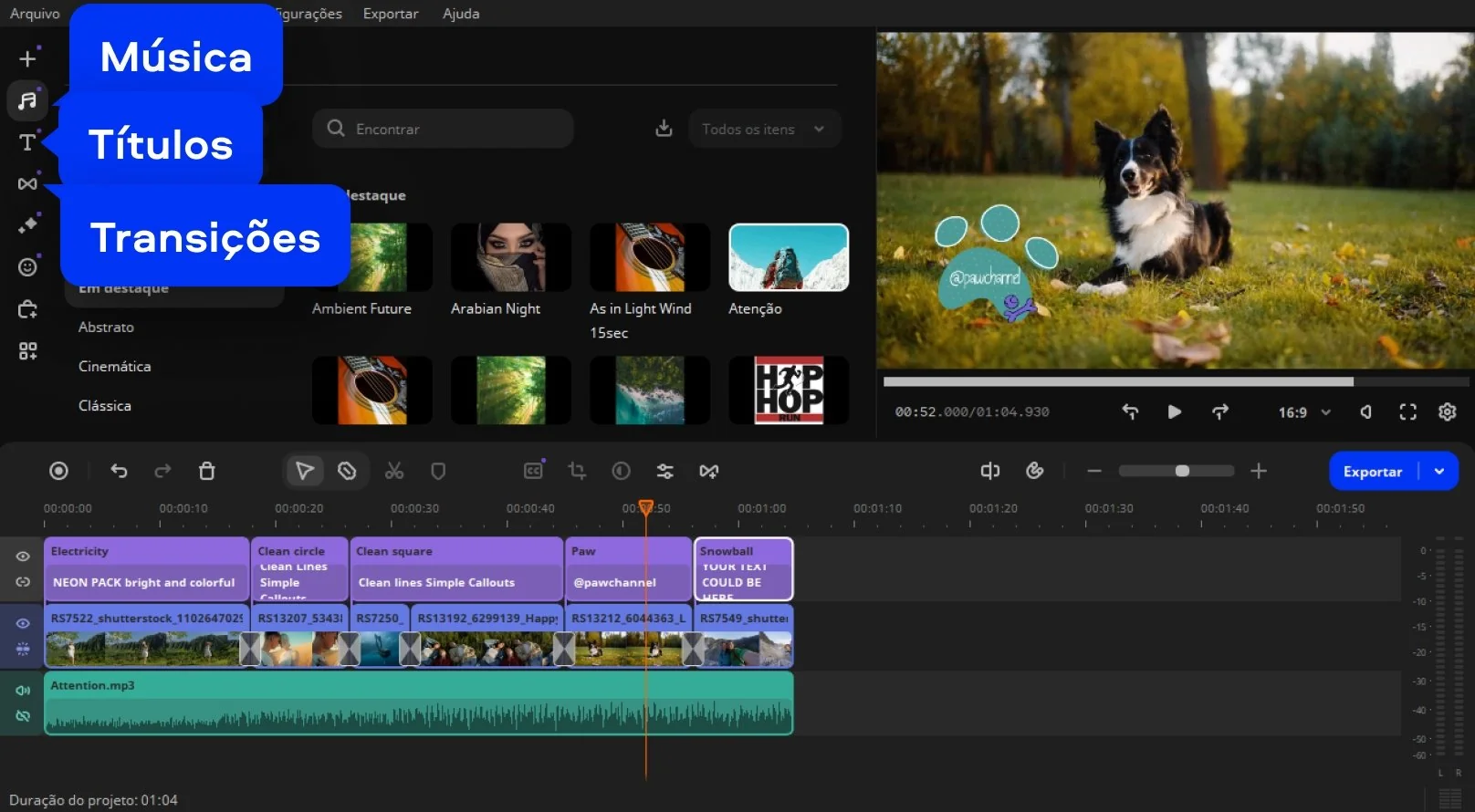 Escolha uma trilha que combine com o vídeo e insira títulos, legendas e transições sutis entre as cenas. São detalhes simples que dão coesão e ritmo ao filme.