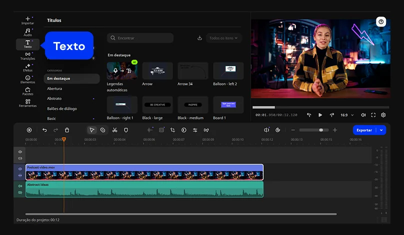 Por que eu escolhi: Este é um editor de vídeo com legenda completo e versátil, com diversas ferramentas fáceis de usar para legendas e uma variedade de outras funções para uma experiência completa de edição de vídeo.