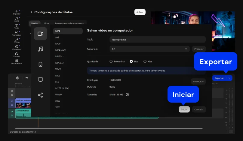 O Movavi Video Editor possui um recurso de geração automática de legendas que transcreve o conteúdo no idioma escolhido, mas o software também oferece a opção de detectar o idioma automaticamente. Você pode personalizar as legendas alterando o texto, as fontes, as cores e a posição, entre outras coisas. Em seguida, você pode escolher se deseja incorporar as legendas ao vídeo ou salvá-las como legendas externas.