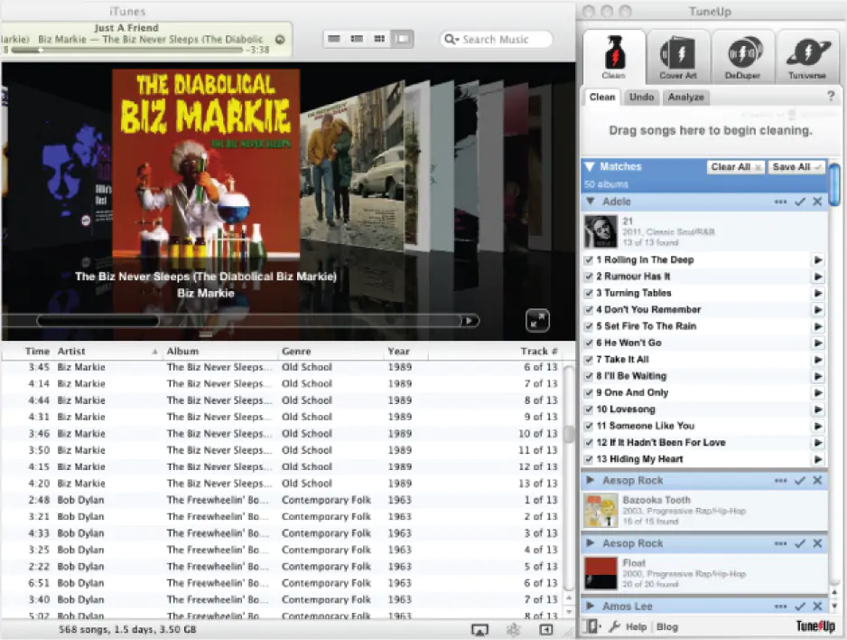 Testei o TuneUp tanto no Windows quanto no Mac, integrado ao iTunes e ao Windows Media Player. O programa analisa automaticamente minha biblioteca de áudio, corrige nomes de faixas e artistas, adiciona capas de álbuns ausentes e remove duplicatas. Achei útil o fato de ele permitir revisar cada alteração antes de aplicá-la – isso evita erros automáticos. Segundo o PCWorld, o TuneUp “limpa e renomeia arquivos de música em poucos cliques”. O TuneUp é pago (com versão de avaliação gratuita) e possui dificuldade 3/10, fácil de usar mesmo com grandes bibliotecas.