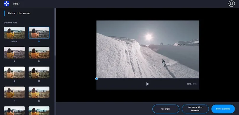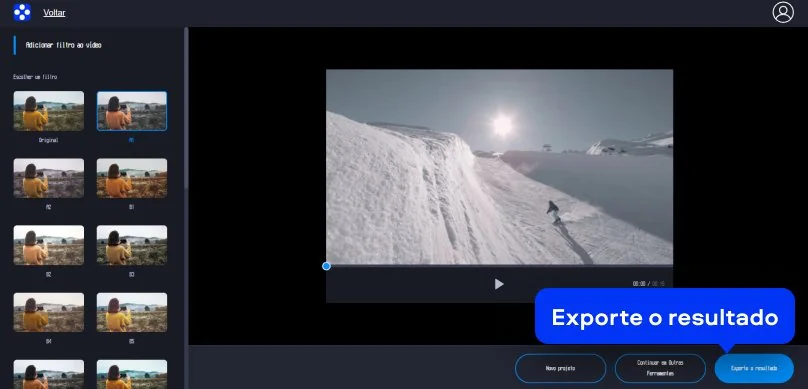 O Movavi Video Editor é um editor com filtros para vídeo moderno e intuitivo para computadores Windows e Mac. O programa oferece uma interface clara, ferramentas de edição práticas e uma ampla biblioteca de estilos visuais para melhorar rapidamente a aparência dos seus vídeos. Além de ajustar cores e aplicar estilos cinematográficos, o editor permite cortar clipes, adicionar transições, inserir títulos e trabalhar com áudio em poucos cliques. Graças ao fluxo de trabalho simples, tanto iniciantes quanto usuários mais experientes podem criar vídeos com aparência profissional sem precisar de conhecimentos avançados de edição.