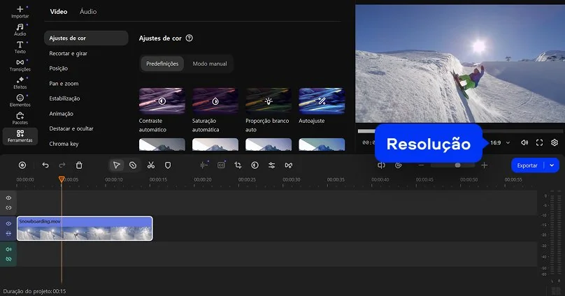 A ferramenta online do Movavi é um redimensionador de vídeo simples e fácil de usar, ideal para iniciantes e que funciona direto no navegador. Você não precisa instalar nada. Com poucos cliques, você ajusta o tamanho do vídeo para redes sociais, sites ou uso pessoal. É simples de usar. Não precisa de experiência nem conhecimento técnico. Qualquer pessoa pode redimensionar vídeo ou diminuir o tamanho do vídeo sem dificuldade.