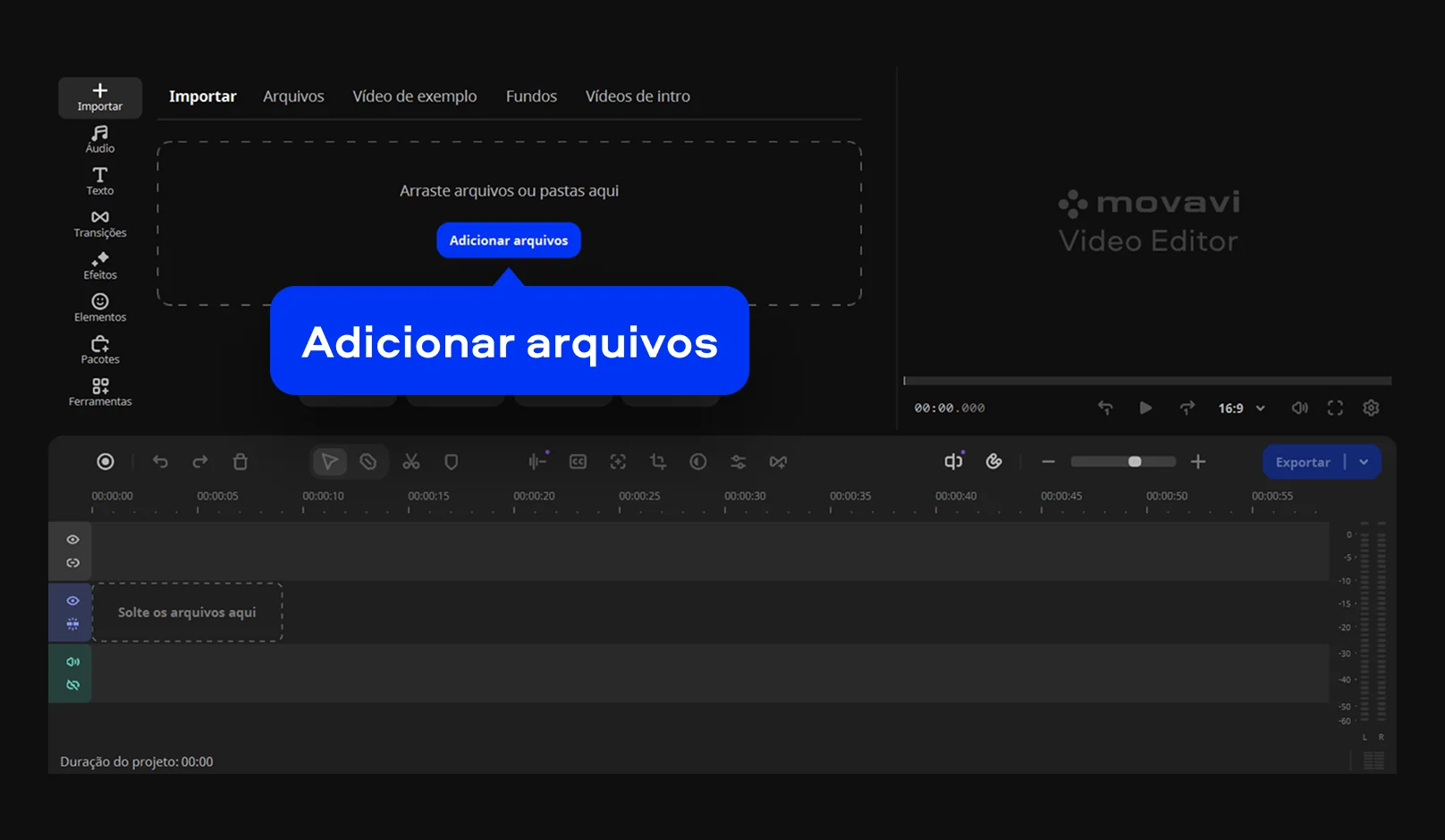 *A versão gratuita do Movavi Video Editor pode ter as seguintes restrições dependendo da versão: marca d'água nos clipes exportados, limite de 60 segundos para vídeo ou 1/2 para áudio e/ou alguns recursos avançados não disponíveis ao exportar vídeos.