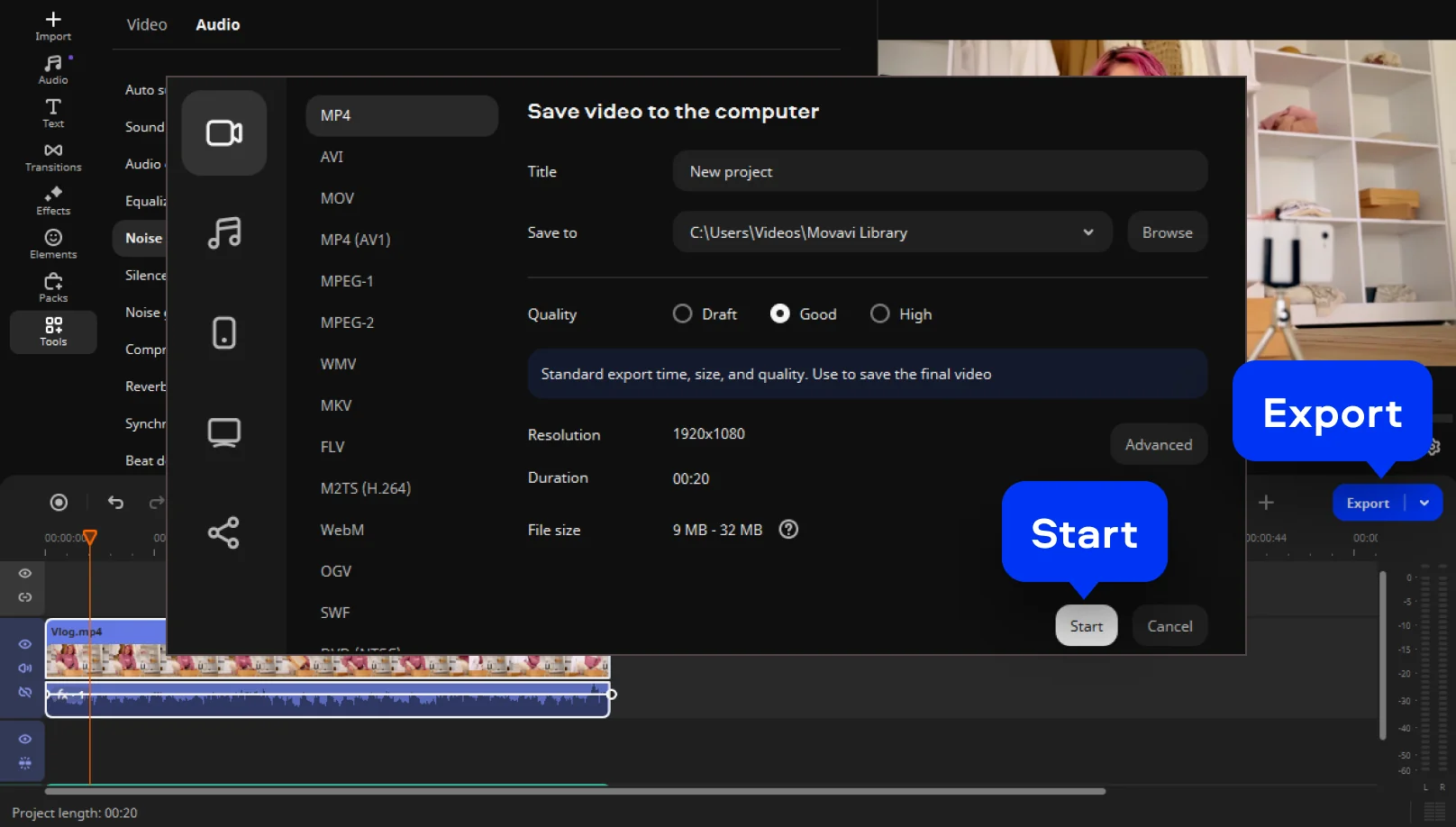 How to remove background noise from audio and video files with Movavi Video Editor