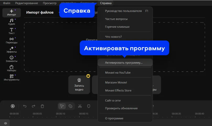 Активация ключом в программе Video Editor