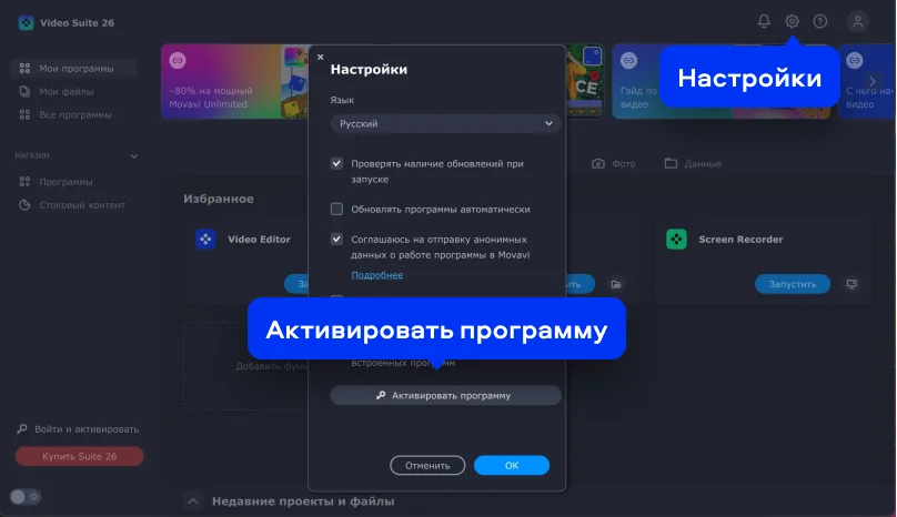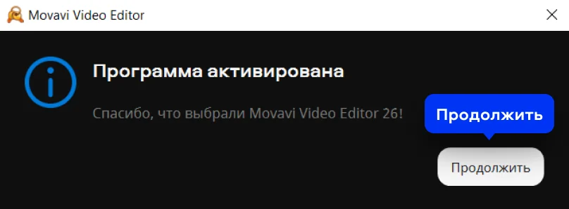 Перезапустите Movavi Video Suite. Это активирует саму программу Video Suite и все приложения в ее составе.
