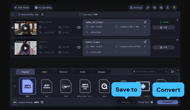 In a few minutes, you’ll have a smaller, smoother MP4 that plays on almost anything: no extra downloads, no setup, just clean results both offline and online.