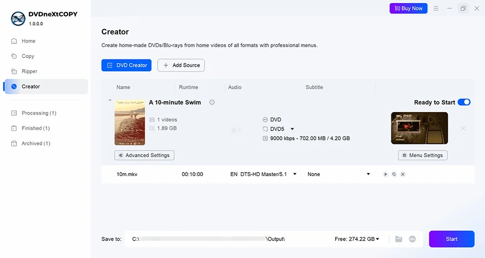 It supports online videos, too. I used YouTube and Vimeo links, and Freemake imported and prepared them for DVD without extra downloads. The program can export projects as ISO files or DVD folders if you don’t have a blank disc on hand. DVD menus, chapter markers, aspect ratios, PAL/NTSC – all these settings are adjustable. I ran multiple batches of long videos, and it fit up to 40 hours onto one disc without errors.