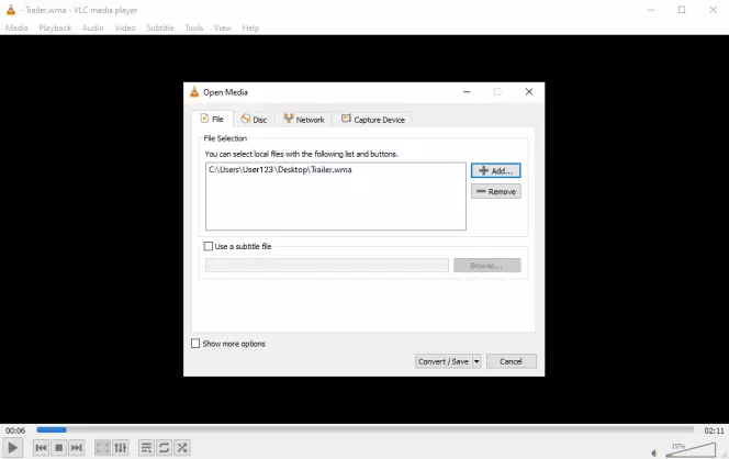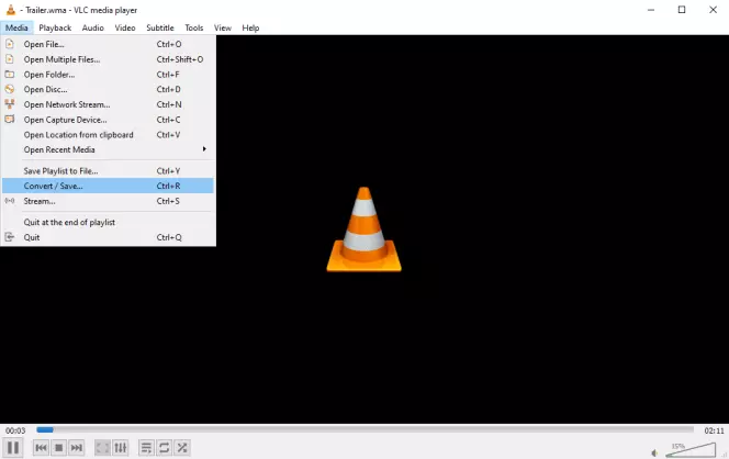 Choose Media > Convert / Save.