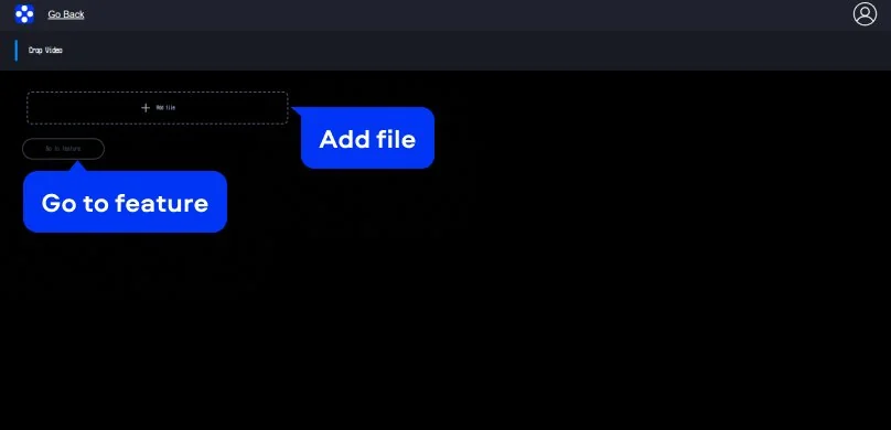 Click the Add file button to upload your video. Once your video loads, you’ll see it listed at the top, and you can jump in with Go to feature.