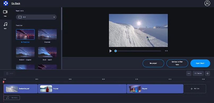This online video combiner is perfect for quick social posts, birthday montages, or travel recaps – especially when you just want to merge videos without overthinking it.
