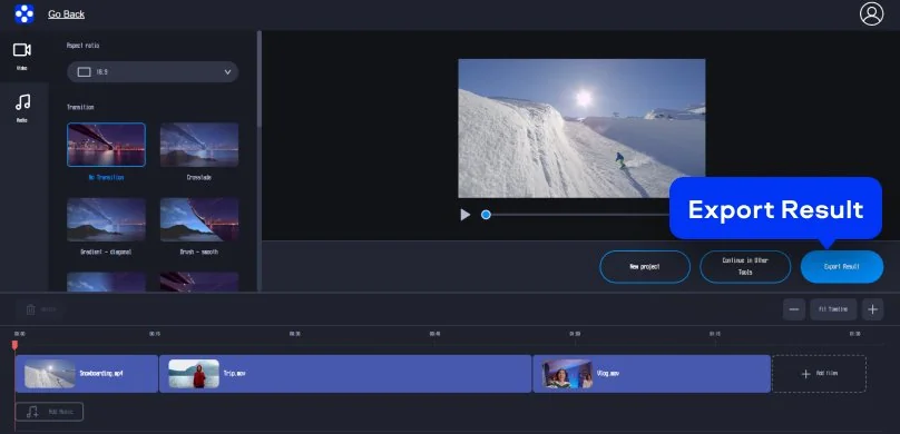 When everything looks good in the preview window, click Export Result. The tool processes your project quickly, and you can save the final video without installing extra software or running a heavy download. It’s fast, practical, and ideal for everyday edits.