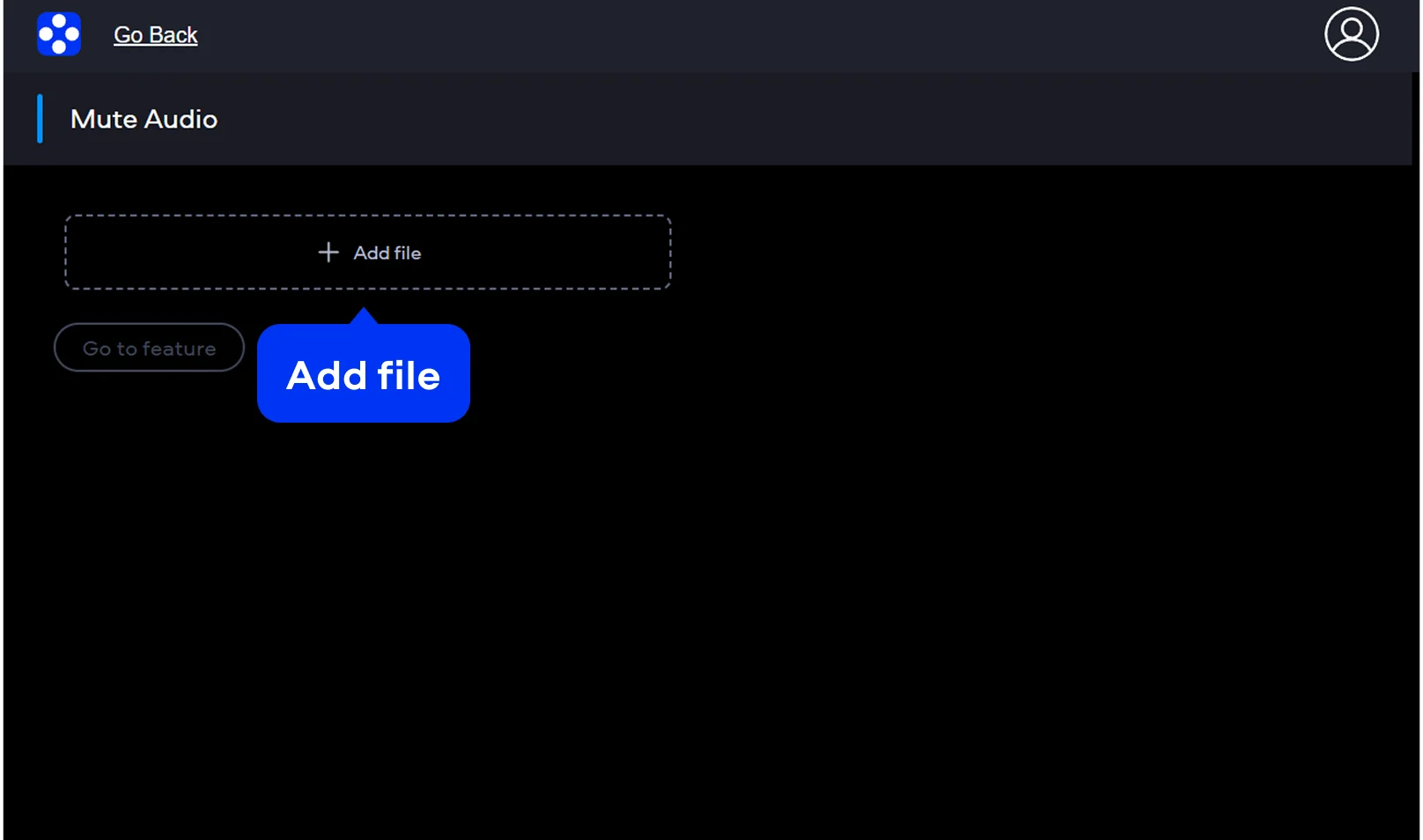 Once your video is uploaded, click Go to feature. With a single, intuitive action, the app works its magic to remove sound from video content. There are no confusing sliders or hidden menus.