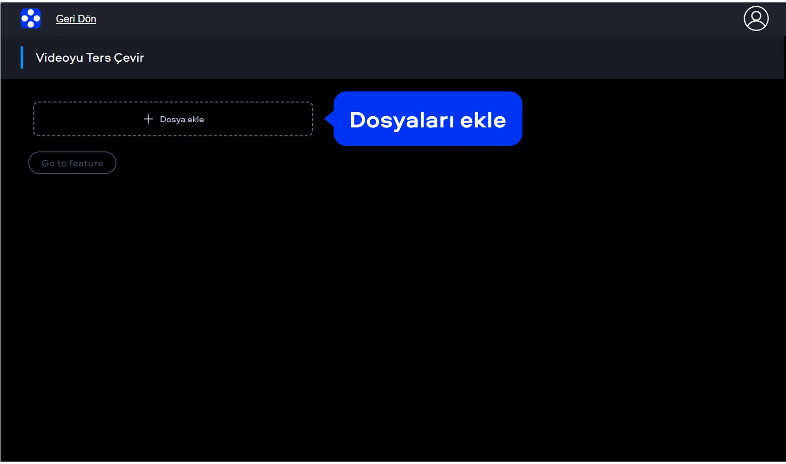 Ekranın üst kısmındaki başlık çubuğunda bulunan Dosyaları ekle düğmesine tıklayın. Araç açıldığında tekrar Dosyalar ekle seçeneğine tıklayın ve cihazınızdan ters çevirmek istediğiniz videoyu seçin. Dosya otomatik olarak yüklenmeye başlayacaktır.