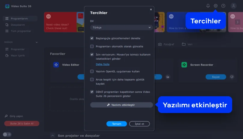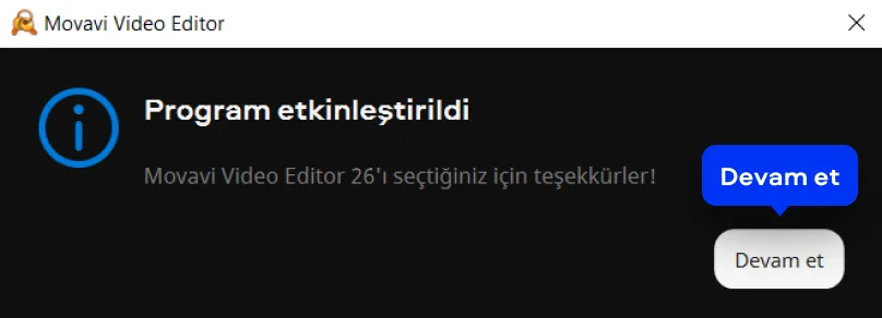 Movavi Video Suite'i yeniden başlatın. Bu işlem, Video Suite'i ve tüm programlarını etkinleştirecektir.