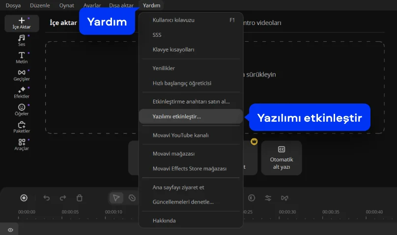 Yardım menüsünden Yazılımı etkinleştir seçeneğini işaretleyin.