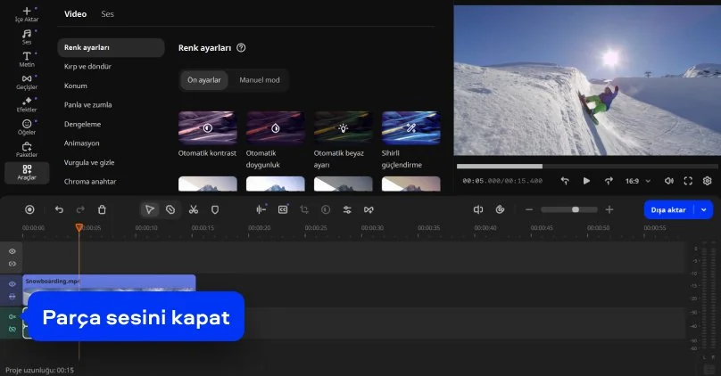 Evet, yukarıda bahsedilen her iki araç da bu temel işlemi gerçekleştirmenize olanak tanır. Hızlı ve otomatik bir çözüm için online ses kaldırma aracını kullanabilirsiniz. Daha hassas düzenlemeler için ise masaüstü Movavi Video Editor, videodan sesi kaldırmanıza imkân verir. Her iki yöntem de görüntü kalitesini korur. Ardından, orijinal sesin etkisi olmadan yeni ve istediğiniz sesleri ekleyebilirsiniz.