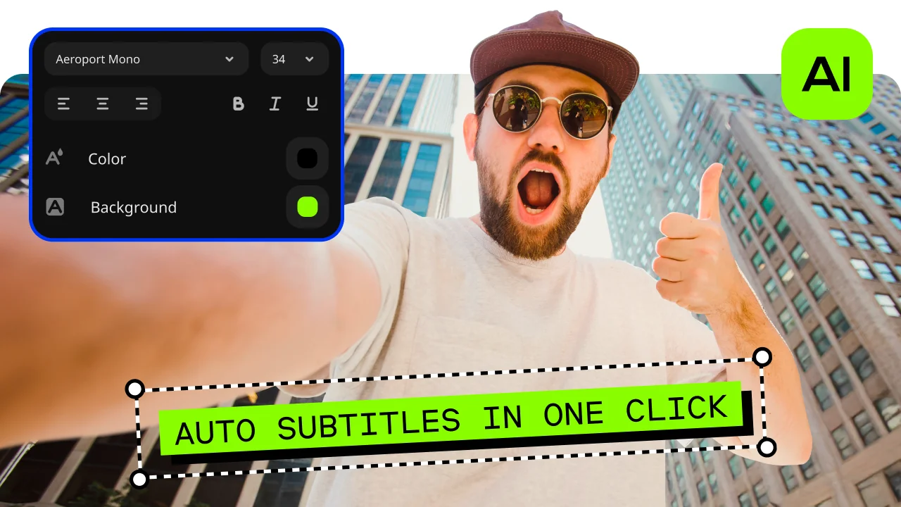Let AI quickly turn your speech into text and automatically create captions for your videos in almost any language. Just choose the font, text color, position – and you’re all set!