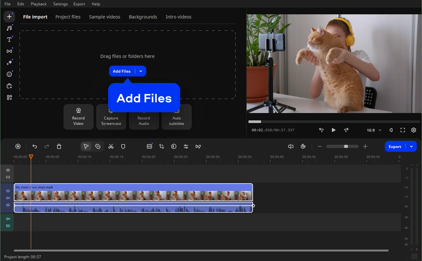 Launch Movavi Video Editor and drop your clip onto the timeline. The interface is clean, intuitive, and ready for quick sound fixes without hunting through menus.