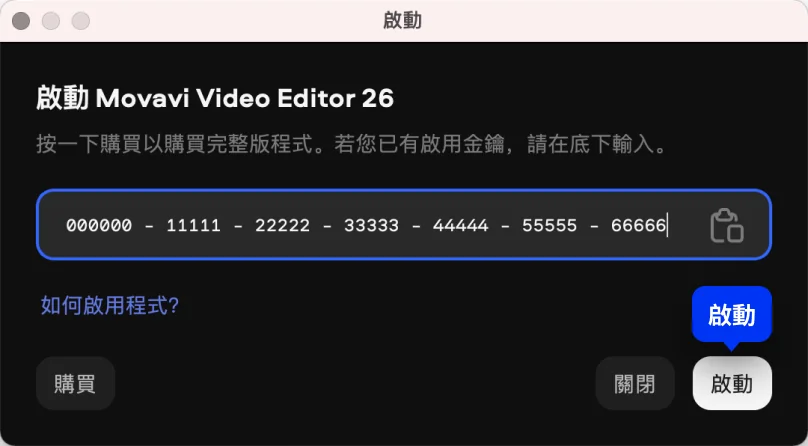 本頁面會說明如何為 Mac 啟用 Movavi 程式。您也可以在本頁找到常見問題集,在啟用的過程中如果有某些部分無法正常運作,這個部分將會告訴您該怎麼做。