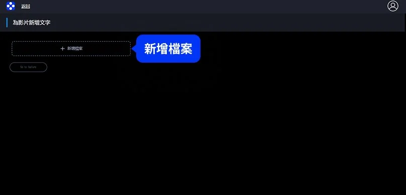 進入線上工具的頁面,按「 新增檔案 」把需要在影片畫面加字的檔案上傳,再按「 Go to feature 」就能進入編輯流程。整個過程在線上完成,免安裝即可開始操作,無論是在手機或電腦上都能使用。