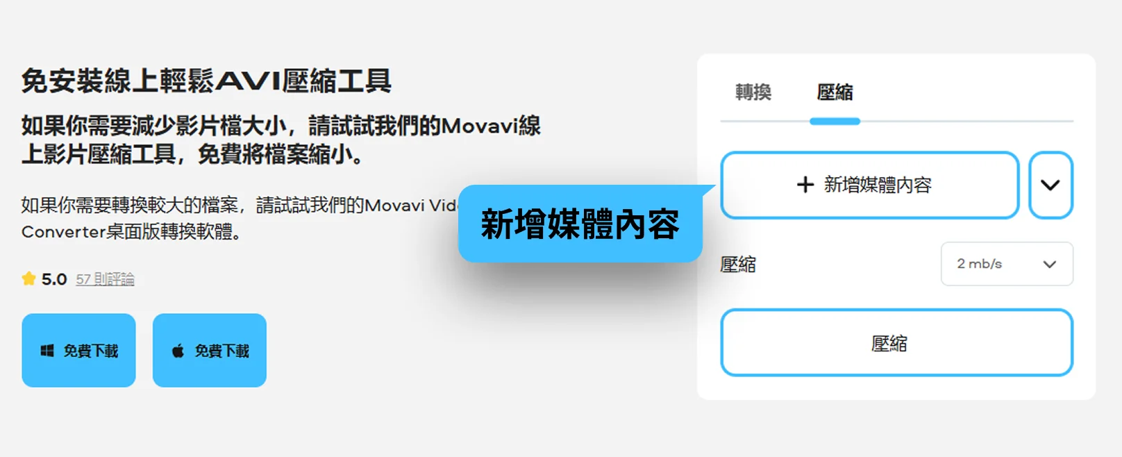 線上版本主打免安裝與快速處理,適合臨時壓縮AVI處理。Movavi Video Converter桌面版則提供完整的功能,包括處理檔案太大的情況,或執行批次轉檔。此外,它的進階壓縮設定與更高效能處理,更適合專業使用者。