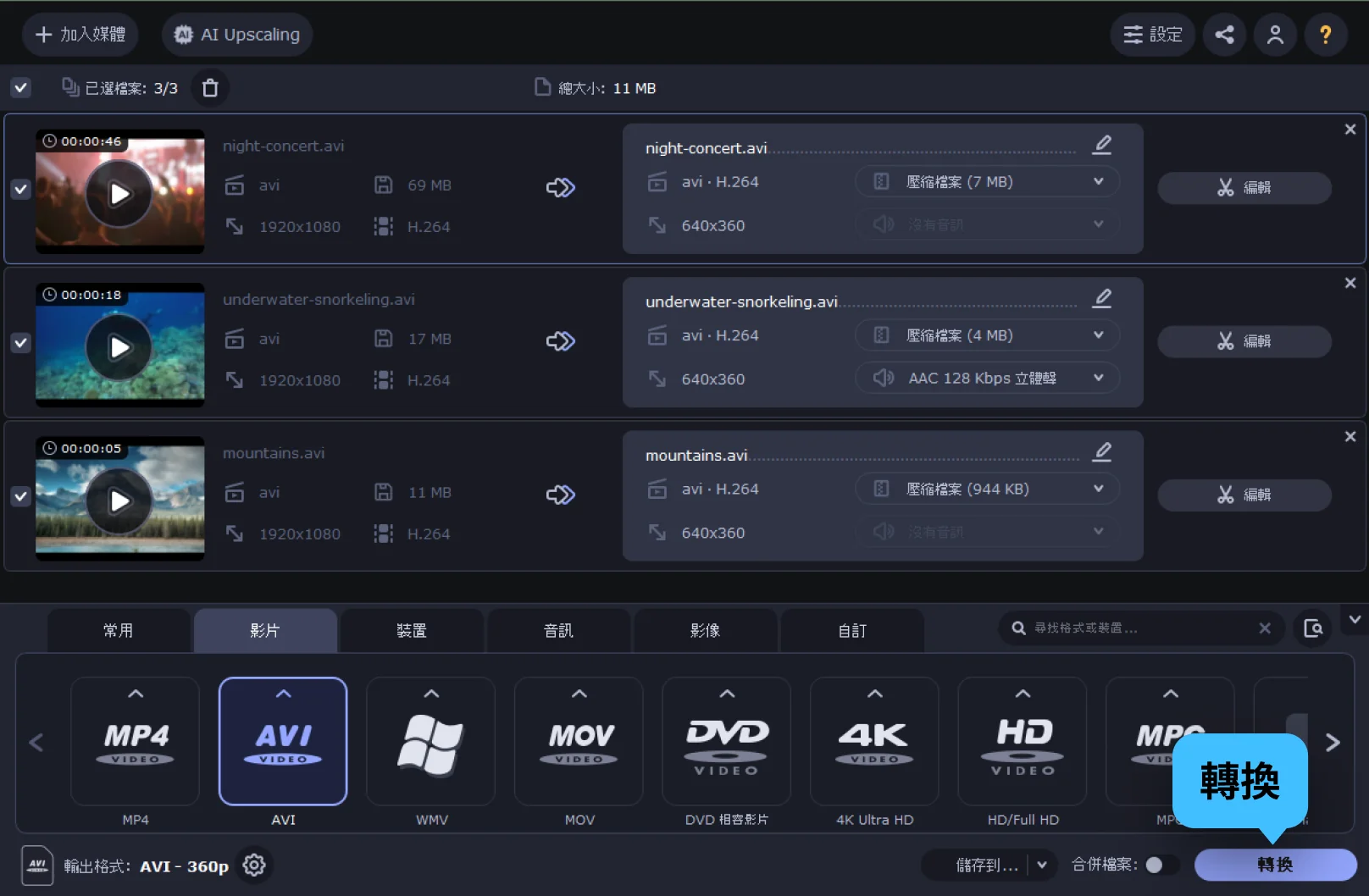 如果你跟我一樣需要經常性處理影片檔,或需要更高品質與更多自訂選項,或希望快速與離線安全性,Movavi Video Converter桌面版將是更適合之選。這款軟體支援多種格式,包括AVI、MP4、MOV、MKV等,並提供強大壓縮與轉檔功能。