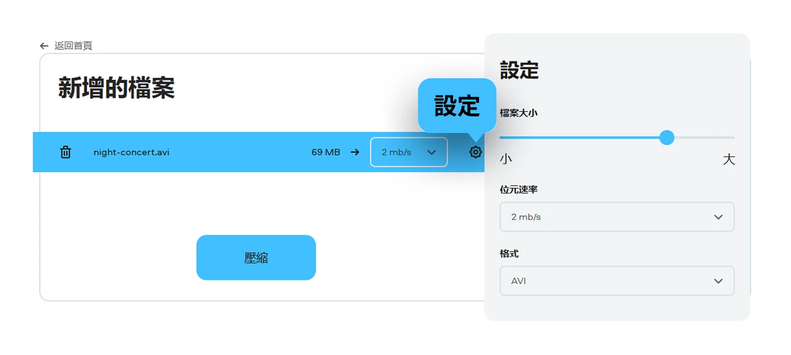 Movavi線上壓縮工具,堪稱為一款簡單、直覺的影片壓縮利器,可支援AVI、MP4、MOV、MKV等多種格式。無須下載軟體,整個流程快速,適合臨時壓縮AVI與減低容量。