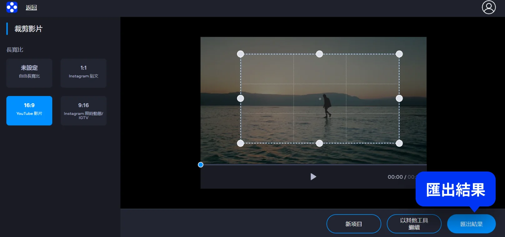 裁剪畫面調整完成後,點擊 匯出結果,就能下載已完成影片畫面裁切的檔案。