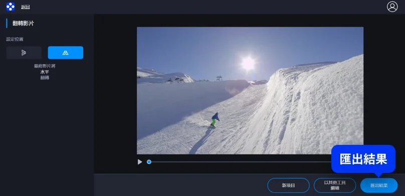 確認翻轉效果後,點選匯出結果,即可下載已完成翻轉的影片檔,即可用於分享或後續剪輯。