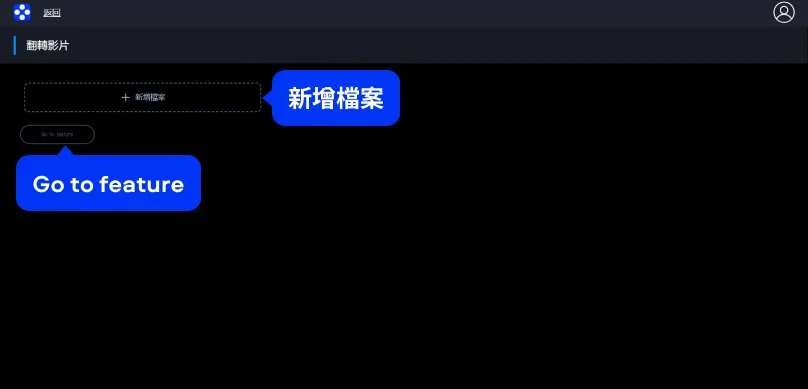 點擊Movavi 線上影片翻轉工具的新增檔案,上傳您要做翻轉處理的影片檔,然後點選 Go to feature,即可開始編輯影片。影片檔案最大限制為 500 MB。