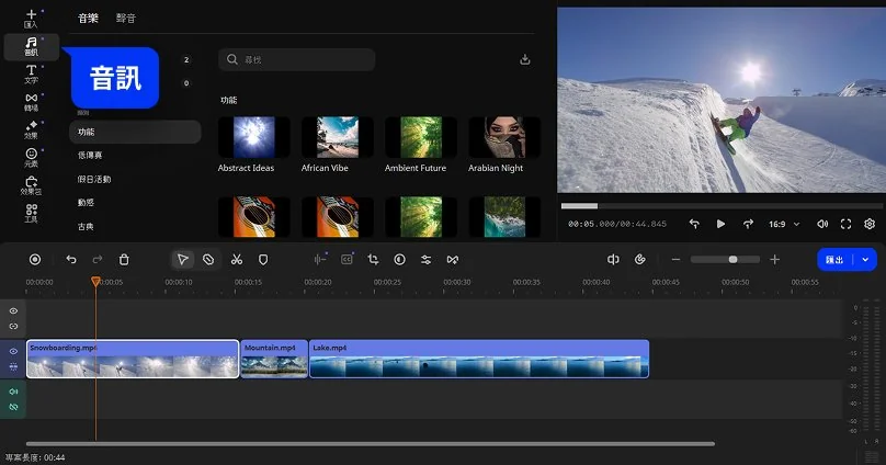 - 一鍵式 AI 工具:自動字幕、消除雜訊等